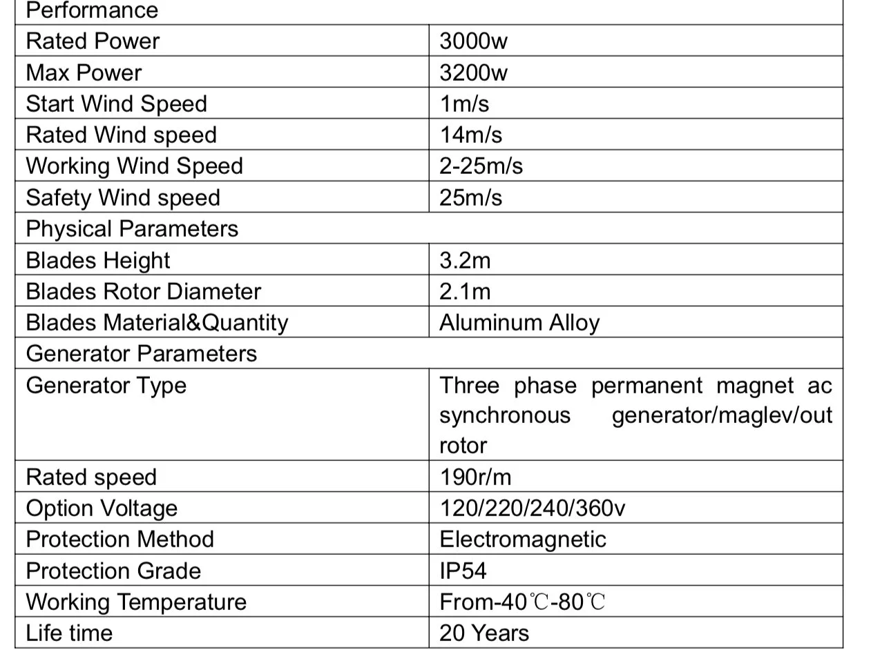 The products in the Whirley System are best in class/price components available in todays market. They take DC to AC 220 single, direct feed to house or EV charge and supply adequate battery to keep things running without any wind. And it is backed with the local electrical supply source. The entire system is built to last even with the salt latent air and the desert dust blown across the Caribbean will not harm the system.